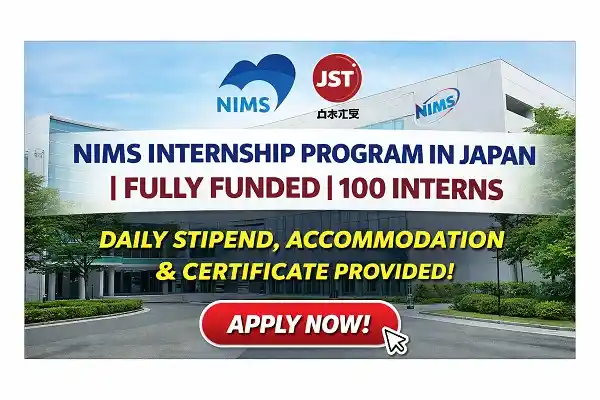 The NIMS Internship 2026 in Japan | Fully Funded | 100 Interns is a golden opportunity for students who want high-quality international research experience, financially supported internships, and global career exposure. With strong funding, global recognition, and career-enhancing benefits, it is one of the best fully funded internships in Japan for 2026.